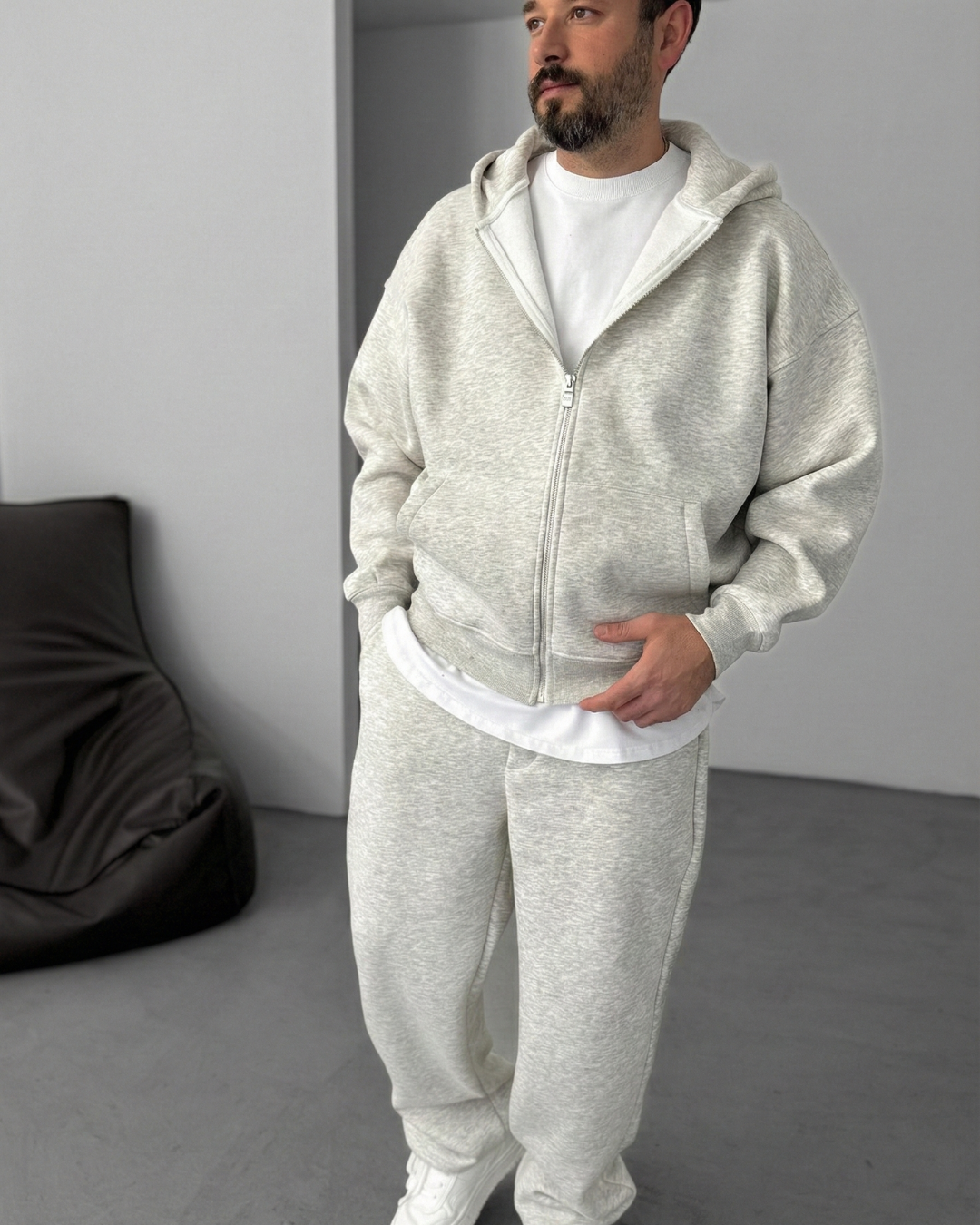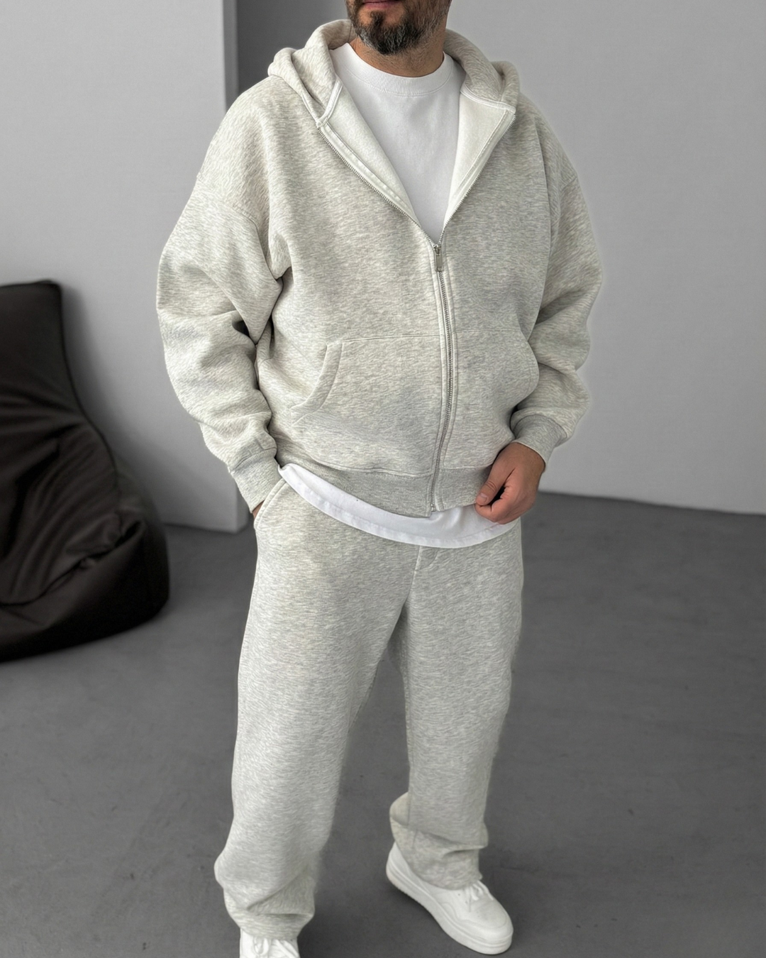 Zip-Up Hoodie - Melange Grey